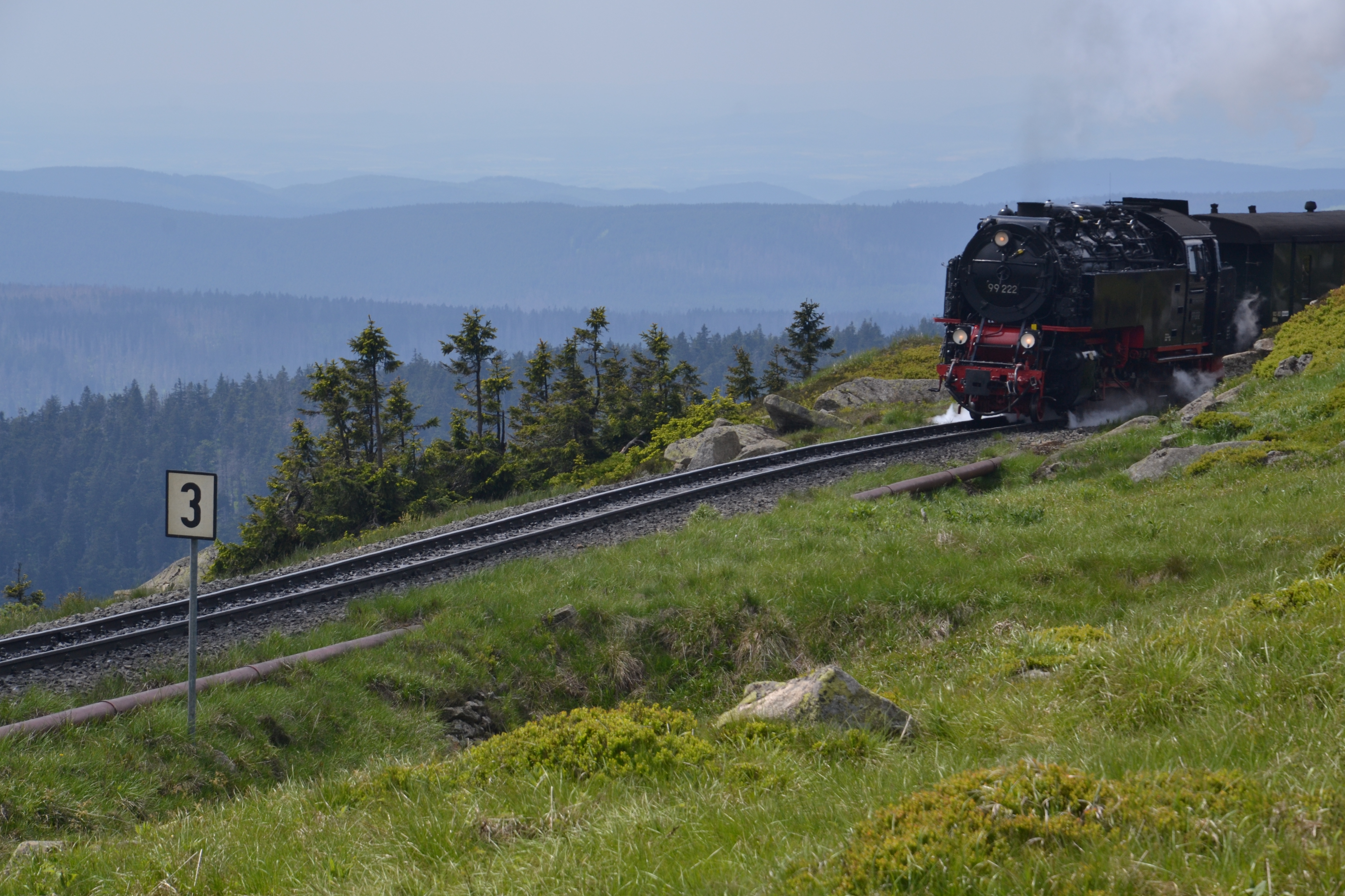 One of the steam engines approaches the top of the Brocken, the highest peak in the Harz region